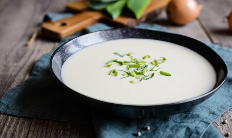 Denna klassiska franska rätt är ljuvlig tillsammans med ett glas sauvignon blanc! Gör så här: Smält smöret i en kastrull och låt purjolöken och löken bli mjuk under omrörning. Tillsätt … Fortsätt läsa Vichyssoise – fransk löksoppa