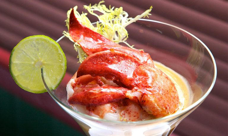 Kall hummercocktail och ett glas Picpoul de Pinet