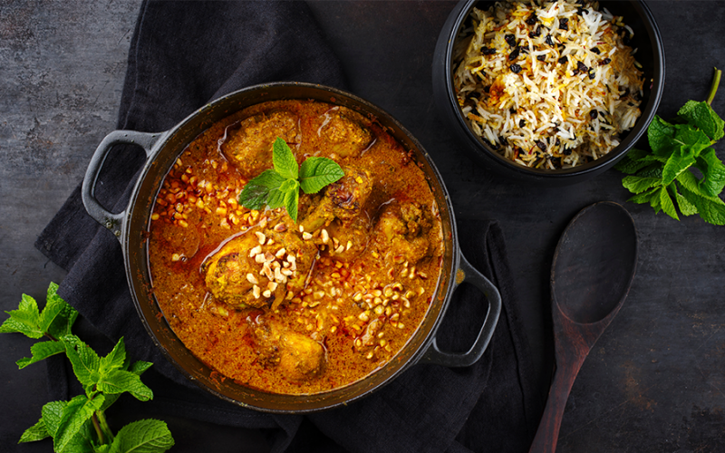 Blanda färsen tillsammans med yoghurt, salt och alla kryddor. Rulla små köttbullar och lägg dem i den sjudande såsen. Lägg på ett lock och koka i ca 10 minuter. Servera tillsammans med basmatiris.