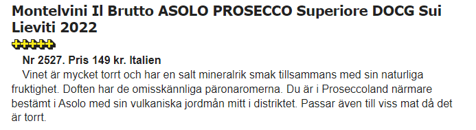 Asolo Prosecco DOCG är mer än bara ett vin; det är en hyllning till den rika kulturen och historien i dess ursprung. Från de historiska kullarna i Asolo till din flaska erbjuder varje dropp en chans att uppleva en bit av Italiens hjärta. Vare sig det är en festlig tillställning eller en stillsam stund, låt Asolo Prosecco DOCG vara ditt sällskap.