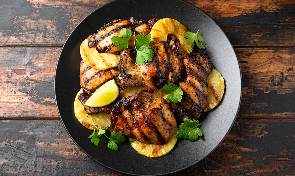 6. Servera: Lägg upp kycklingen på ett serveringsfat och garnera med färsk koriander och limeklyftor. Servera gärna med grillad ananas och en fräsch sallad.