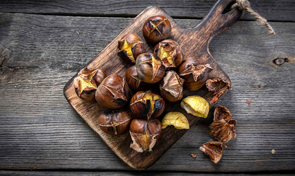 Rostade kastanjer är en klassisk höst- och vinterdelikatess – varma, mjuka och lätt söta med nötig karaktär. Perfekta som snacks, tillbehör till en förrätt eller som mysig kvällsmat framför brasan.