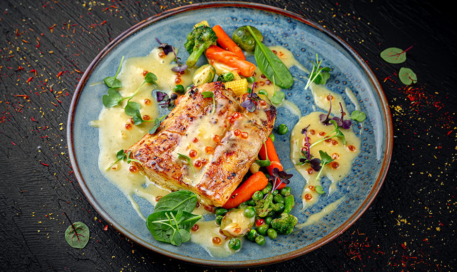 Saftig ugnsbakad lax med citron, vitlök och färska örter, serverad med ugnsrostade grönsaker och en enkel citronsås. En fräsch, vinvänlig rätt där syra, örter och grönsaker gifter sig snyggt med Villa Brichot från Côtes de Gascogne.