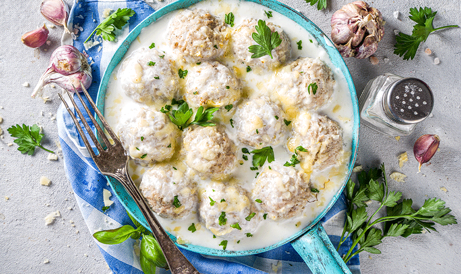 Krämiga kycklingköttbullar i parmesansås är en riktigt god middag för dig som gillar comfort food med milda, runda smaker. Här möts saftiga kycklingköttbullar, ostig sås och persilja i en rätt som passar hela familjen.