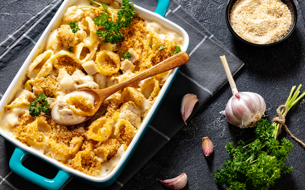Den här krämiga kycklingpastan i ugn är den perfekta kombinationen av vardagsmat och lyx. Saftig kyckling, al dente pasta och en len gräddsås med vitlök och parmesan toppas med ett…