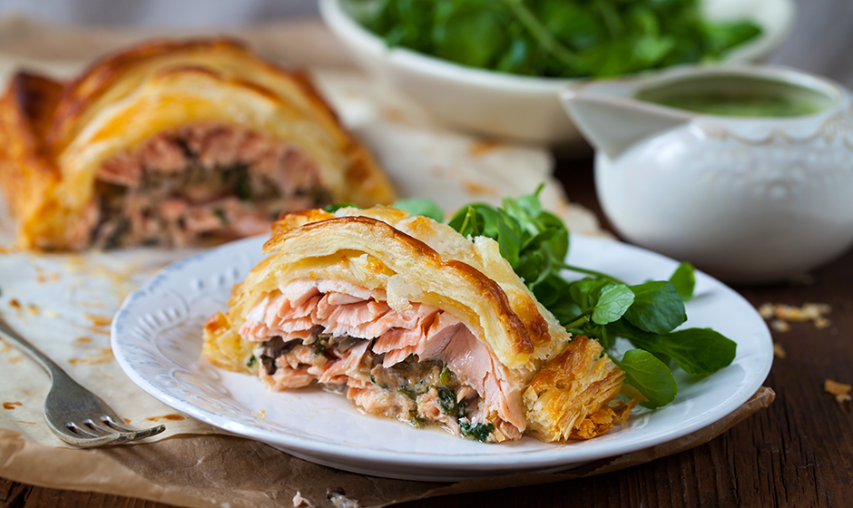 Frasig smördeg omsluter len lax i klassiskern Salmon en Croûte. Tillsammans med friskheten och de livliga bubblorna i ett glas LXRY lyfts smakerna till en elegant helhet – perfekt för både vardagslyx och festliga tillfällen.
