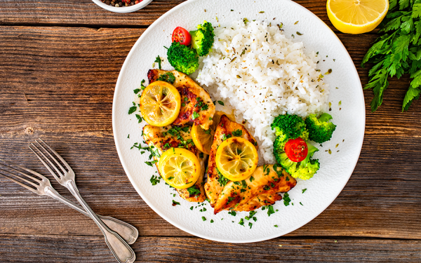 Saftiga kycklingescaloper stekta gyllene i smör och olivolja, smaksatta med citron, vitlök och färska örter. Serveras med fluffigt ris och lättkokt broccoli – en fräsch, balanserad och mycket vinvänlig rätt…