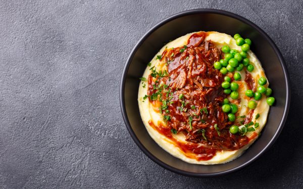 En värmande klassiker i modern tappning. Långkokt nötkött som faller isär i en djup, mustig sky serveras på silkeslent potatismos med söta gröna ärtor. En riktig comfort food-rätt som är…