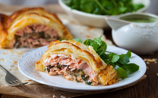 Salmon en Croûte, eller lax inbakad i smördeg, är en fransk klassiker som passar lika bra till fest som helgmiddag. Med frisk vinmatchning från LXRY Sparkling blir det en elegant helhet.